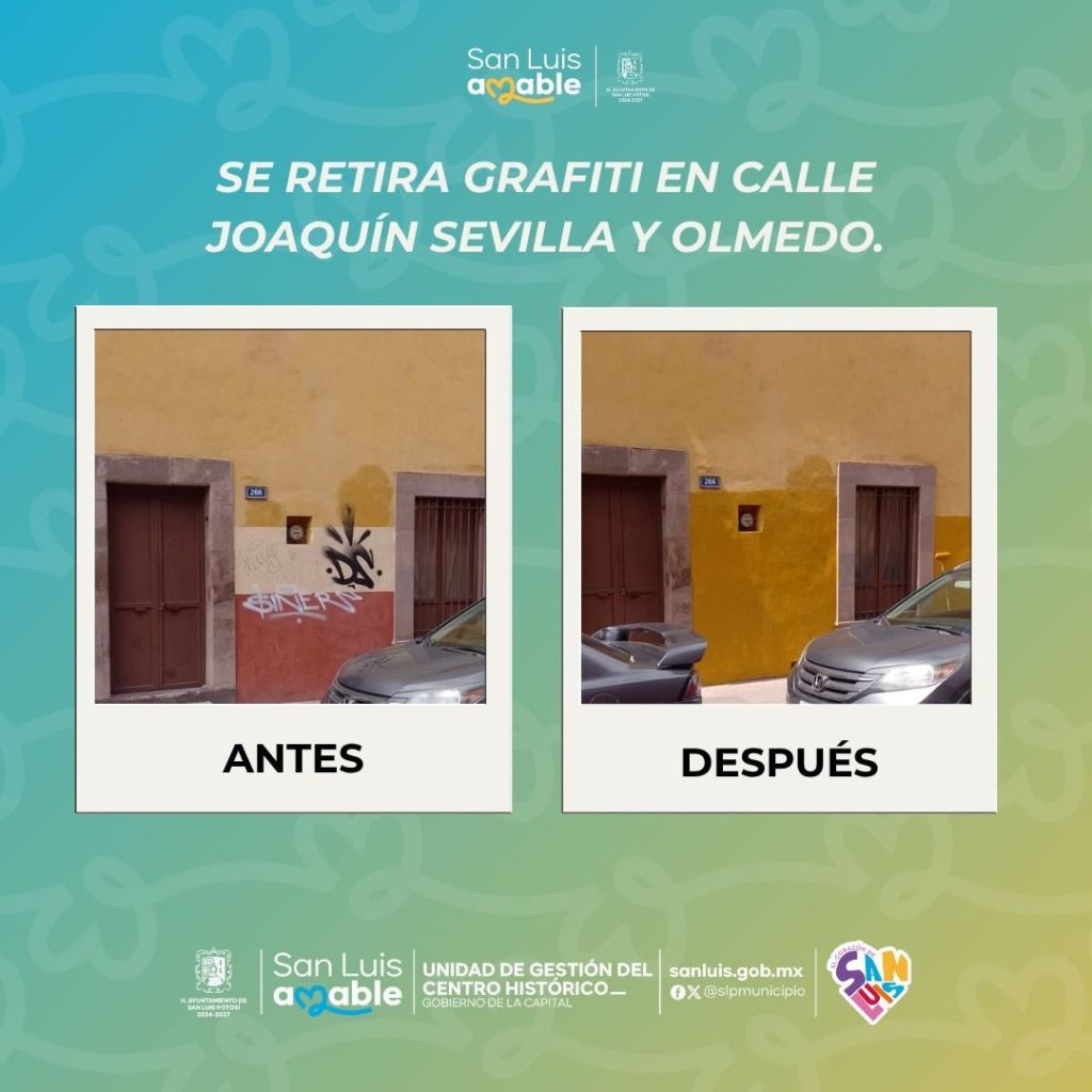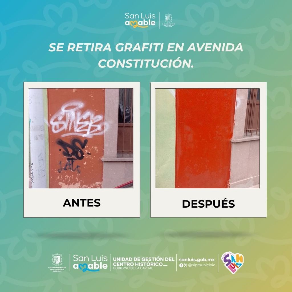 – El Ayuntamiento de San Luis Potosí avanza con su programa permanente “Cero Grafiti” en el corazón de la Capital.