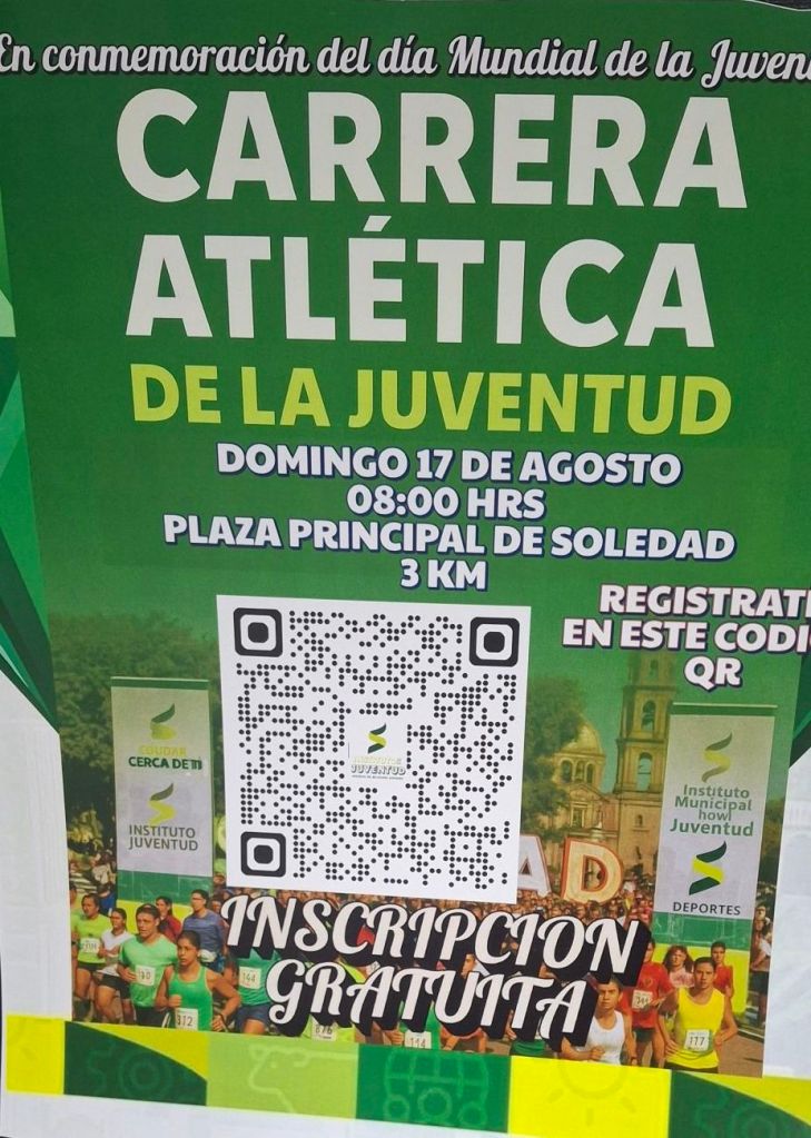 El municipio de Soledad de Graciano Sanchez celebrará día Internacional de las juventudes con Carrera Atletica, Soledad Fest y torneo de fútbol, los días 11 y 17 de agosto con el objetivo fomentar el deporte la cultura y prevención de las juventudes.