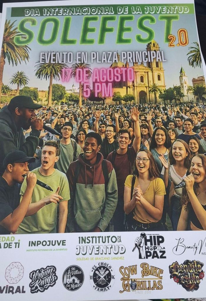 «El Solefest»el evento será en la plaza principal en donde está uniendo diversas cantidades de una calidad impresionante de jóvenes enfocado a presentar actividades culturales artísticas y de música todo esto en una sola el próximo 17 de agosto.