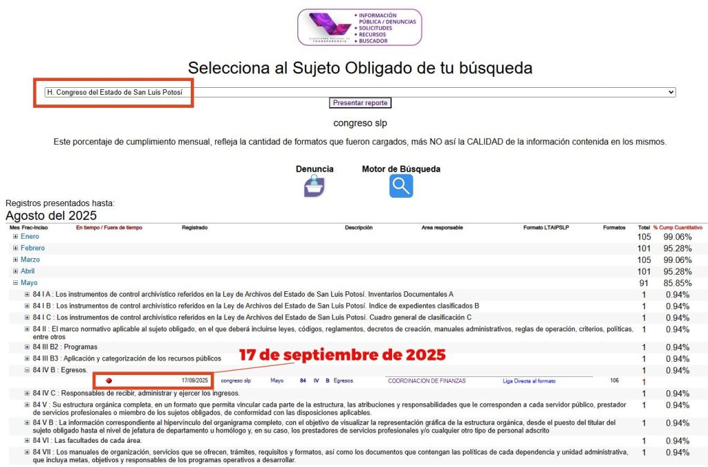 Desde nuestra trinchera, con pruebas en mano y de frente, refutamos sus declaraciones y cuestionamos la gravedad de sus afirmaciones. En nuestra última publicación informamos que el Congreso, desde mayo, no había estado publicando los egresos ni las percepciones del personal. Cualquier persona podía comprobarlo ingresando a la Plataforma Estatal de Transparencia. De hecho, hasta la mañana del 17 de septiembre, esa información seguía sin aparecer.