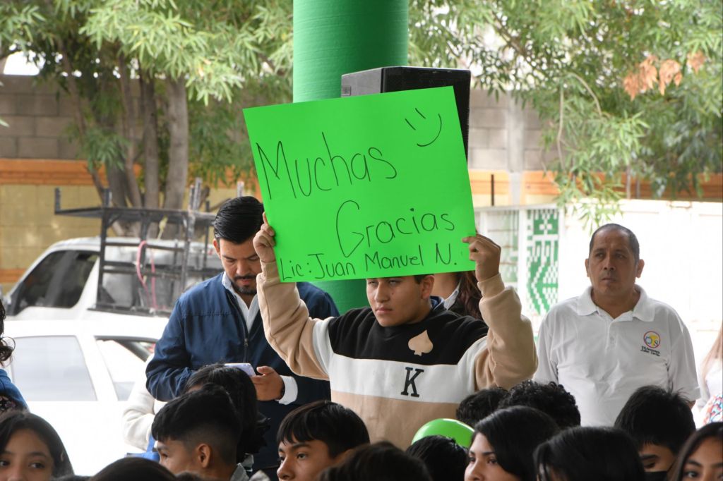 El director de la institución, Julio César Vega Gallegos, agradeció la presencia de las autoridades municipales y reconoció el beneficio que representa esta obra para las y los jóvenes estudiantes. “Hoy nuestra escuela se llena de entusiasmo y de optimismo al recibir este techado que nos permitirá ampliar las actividades deportivas, culturales y académicas en beneficio de nuestros alumnos; esta es su casa Alcalde, Juan Manuel Navarro, y agradecemos profundamente el respaldo que su administración ha brindado para que este sueño se concretara”, señaló el directivo.