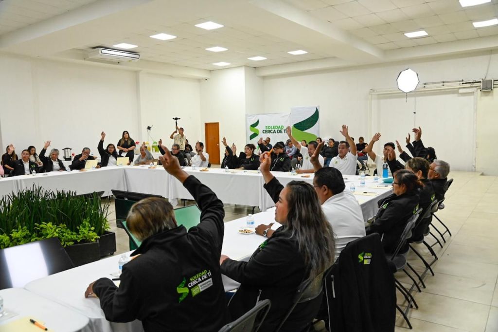 Juan Manuel Navarro Muñiz, Alcalde de Soledad de Graciano Sánchez, encabezó la sesión ordinaria del Consejo de Desarrollo Social Municipal en la que participaron titulares de diversas áreas de la administración y consejeros vecinales de distintas colonias, con el objetivo de dar puntual seguimiento a las solicitudes ciudadanas en materia de seguridad, infraestructura, vialidad, alumbrado, agua potable y servicios municipales.