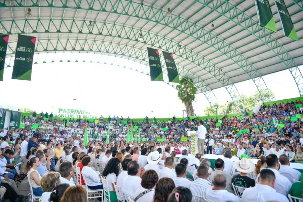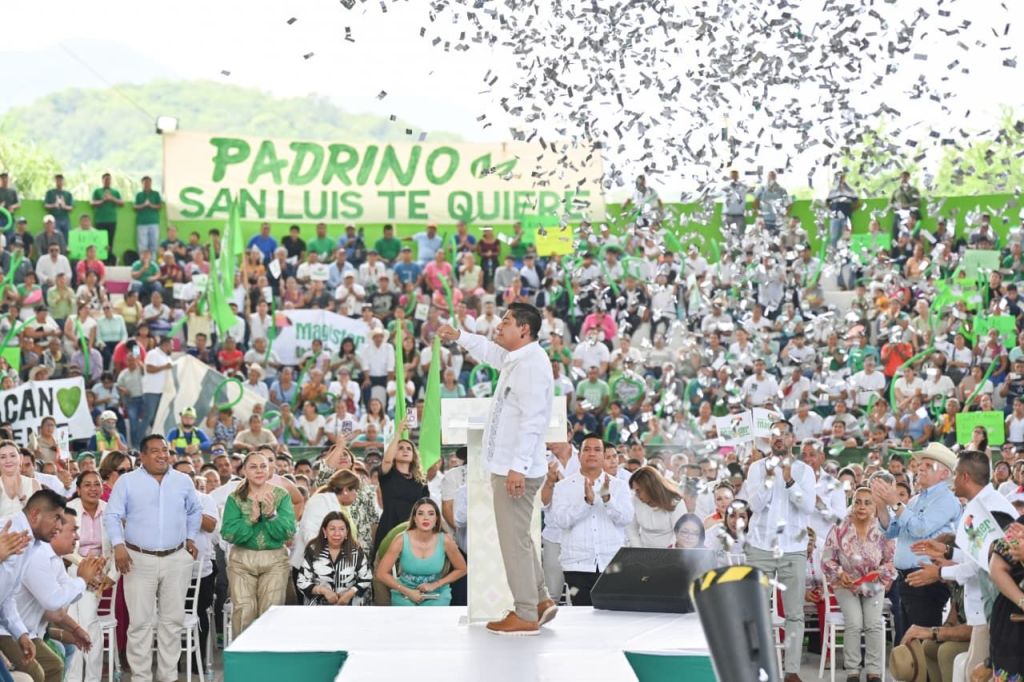 Ante miles de familias reunidas en la Unidad Deportiva de Tamazunchale (Udeta), líderes ganaderos, cañeros, presidentes municipales, funcionarios estatales y legisladores, el Gobernador Ricardo Gallardo sostuvo que los pueblos de la Huasteca han demostrado su valía y que su gobierno no distingue colores ni partidos, y recordó que la herencia maldita nunca quiso escuchar a la gente, pero hoy se demuestra que si se puede, porque cuando hay voluntad se cambia la vida de los pueblos originarios y de todo el Estado.