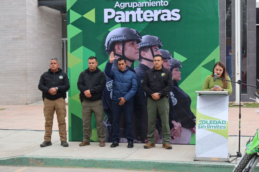 “A nombre de nuestro Presidente Municipal, entregamos estas motocicletas al agrupamiento Panteras, un grupo operativo que ha demostrado compromiso, valentía y vocación social; hoy cuentan con más herramientas para proteger el patrimonio y la integridad de las y los soledenses, reforzando la presencia en calles y colonias, siempre cerca de la gente”, señaló.
