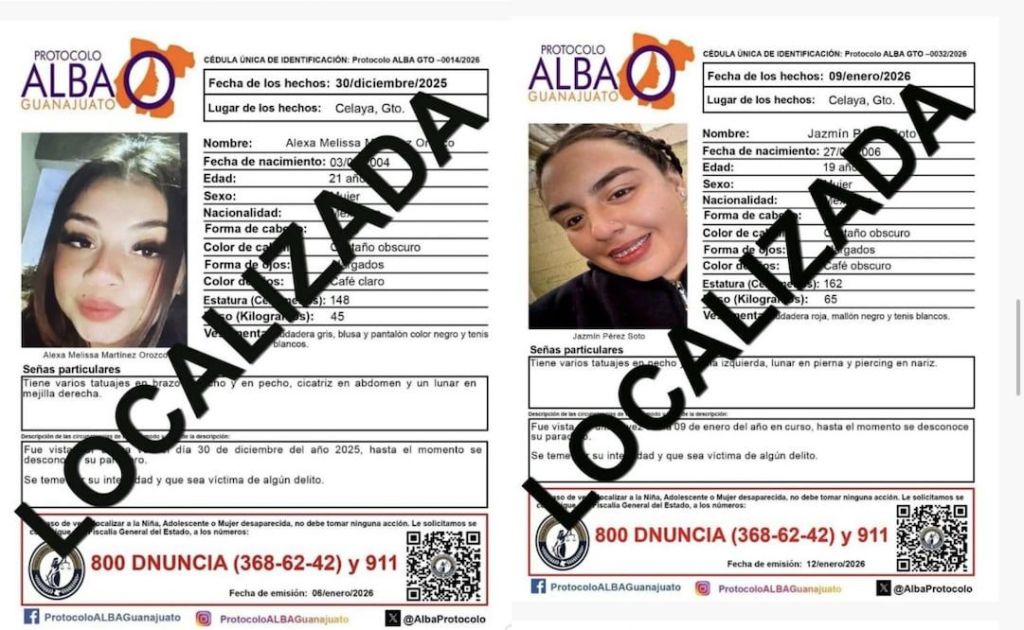 de cinco mujeres, de entre 19 y 30 años de edad, contaban con fichas de búsqueda de la Alerta Amber y del Protocolo Alba