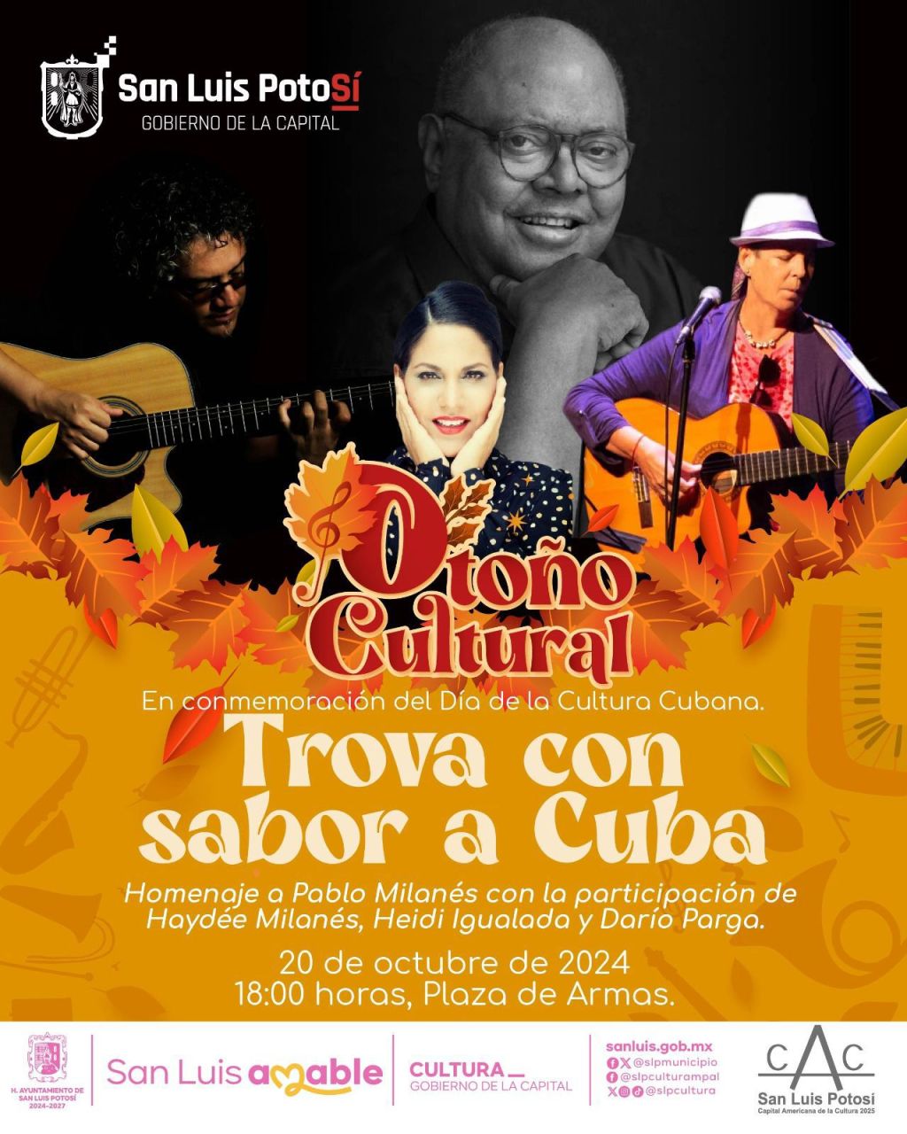 Cultura Municipal invita a disfrutar de «Trova con Sabor a Cuba»: Celebración del Día de la Cultura Cubana, con un Tributo a Pablo Milanés En el marco de la conmemoración del Día de la Cultura Cubana, el Gobierno Municipal de San Luis Potosí, a través de…
