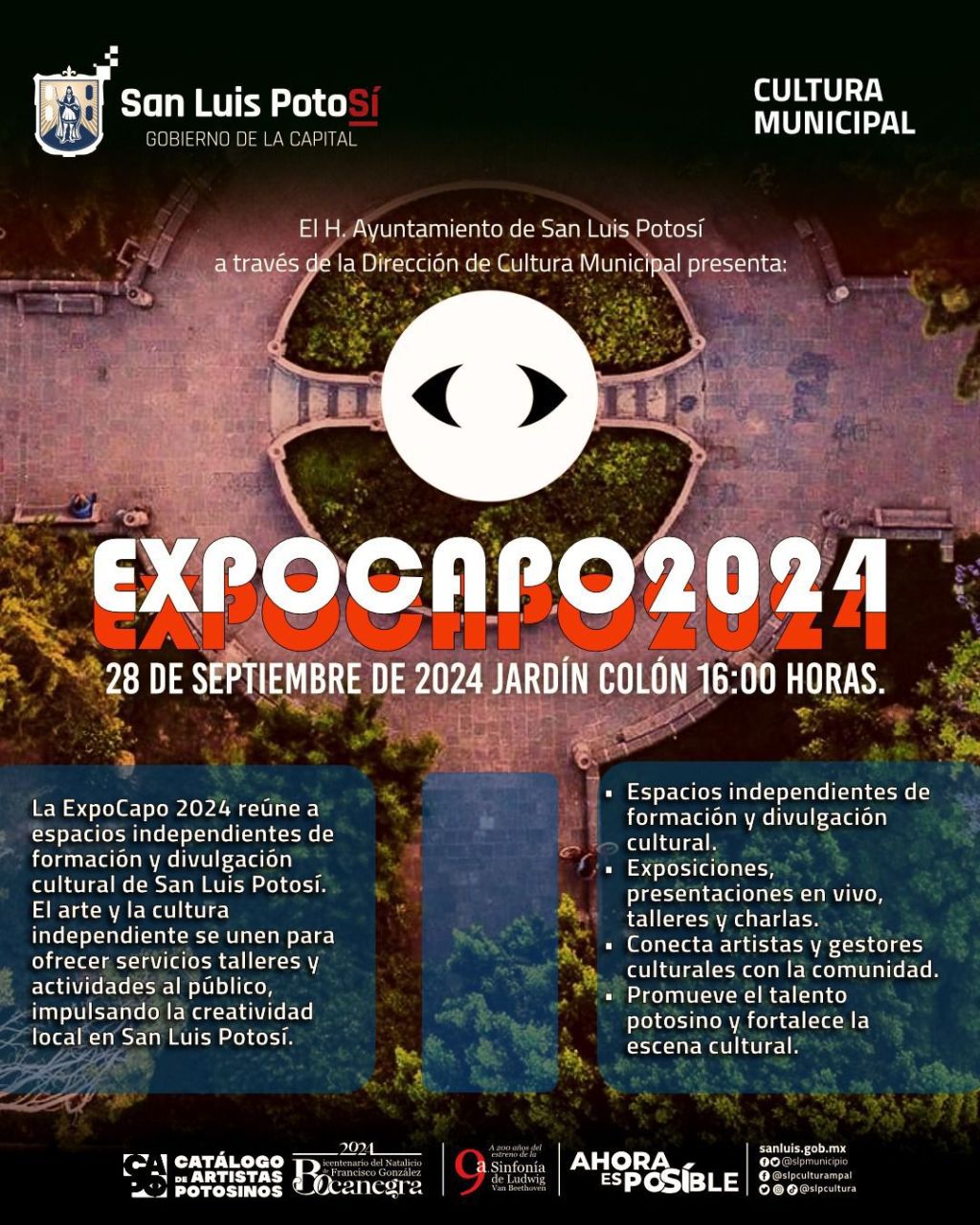 Cultura Municipal invita a la Expo Capo 2024: Un Encuentro con la Cultura Independiente El Gobierno Municipal de San Luis Potosí, a través de su Dirección de Cultura Municipal, invita al público en general a Expo Capo 2024: Un Encuentro con la Cultura Independiente. Este…